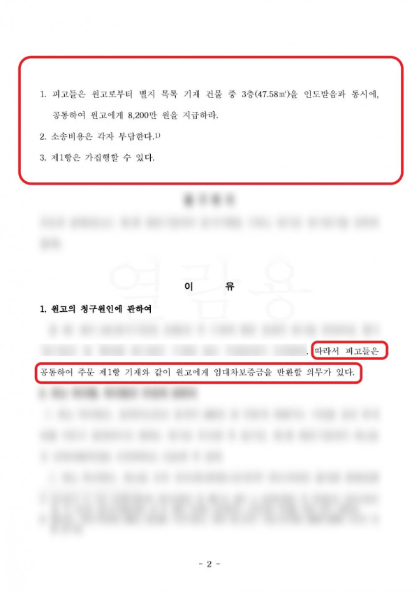 이러한 저의 측의 주장이 받아들여져 보증금반환청구소송은 1회 변론기일로 종결되었고, 상속인들 전원이 공동으로 보증금반환책임을 부담한다는 내용의 판결이 선고되었습니다.