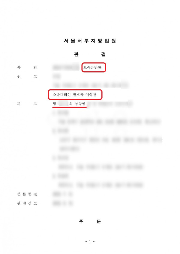 [보증금반환] 임대인 사망 후 상속인들을 상대로 보증금반환청구소송 승소 판결을 받은 사례!