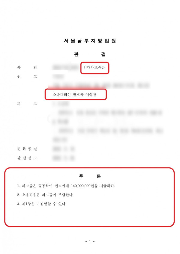 전세사기 사건의 핵심은 채권추심절차라고 할 수 있는데, 기존집주인과 새로운 집주인 상대로 신속하게 보증금반환청구소송을 제기하여 승소 판결문을 확보할 수 있었습니다.