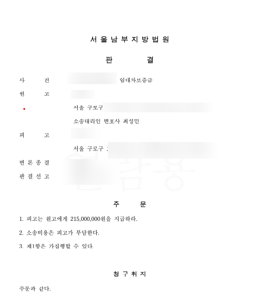 오늘 소개해드린 사안의 경우 서울 구로구 전세사기 사건을 당하신 의뢰인이었는데, 신속한 법적 조치를 통해 승소 판결문을 확보할 수 있었습니다.